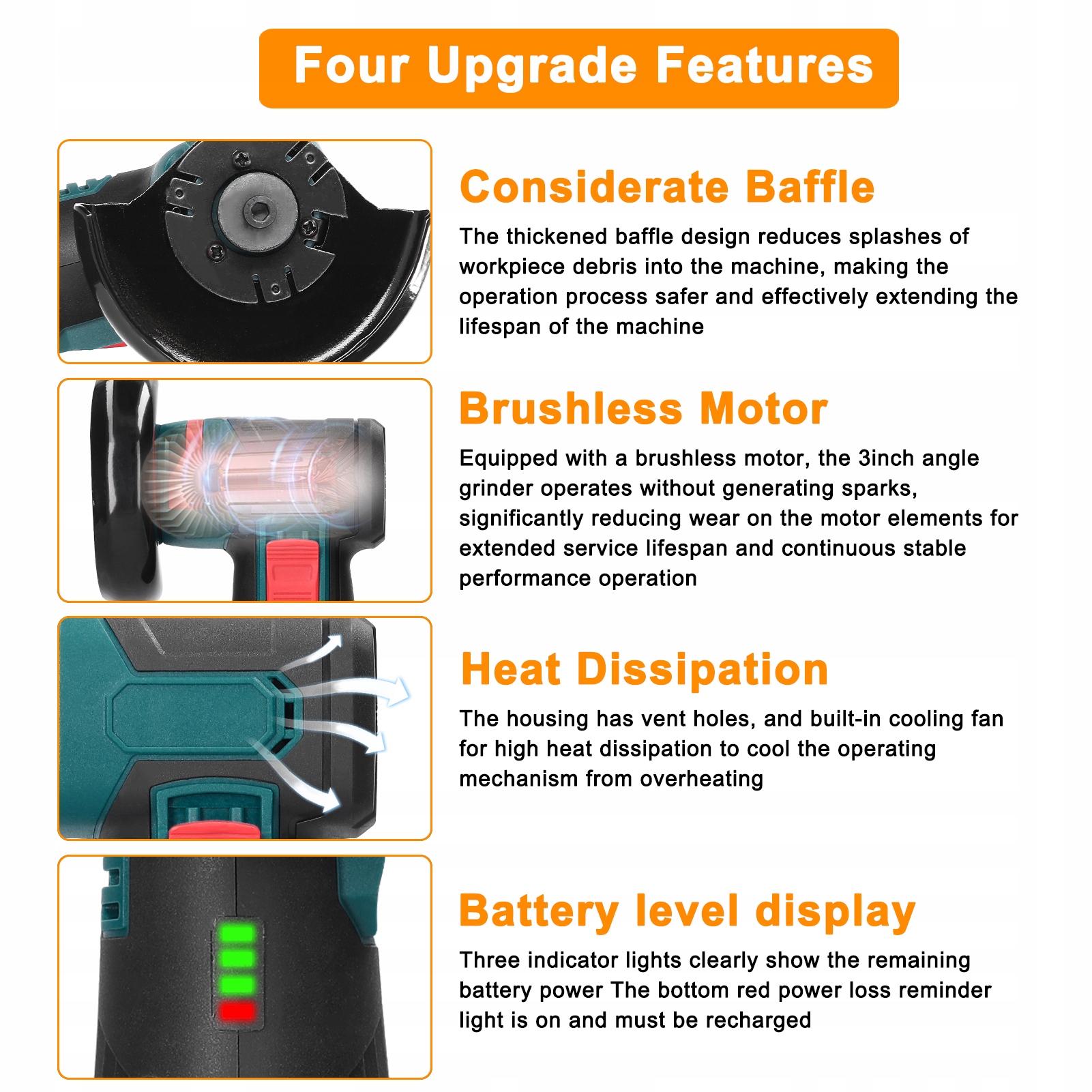 1. 【Бесщеточный двигатель】: оснащен бесщеточным двигателем, он работает без образования искр, что значительно снижает износ компонентов двигателя, обеспечивая длительный срок службы и постоянную стабильную работу.