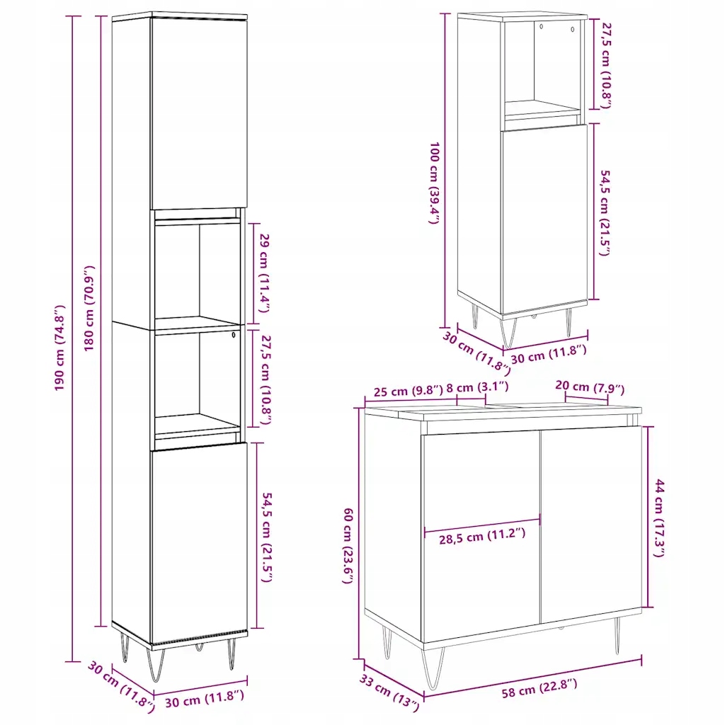3 части Комплект мебели для ванной комнаты, серый бетон