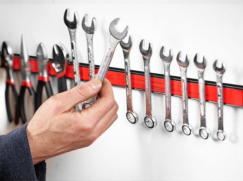 3 магнитные полоски позволят вам под заказ в гараже, складе. Металлические инструменты, такие как шестигранные ключи, плоскогубцы, отвертки, пилы и молотки, будут храниться просто и удобно.