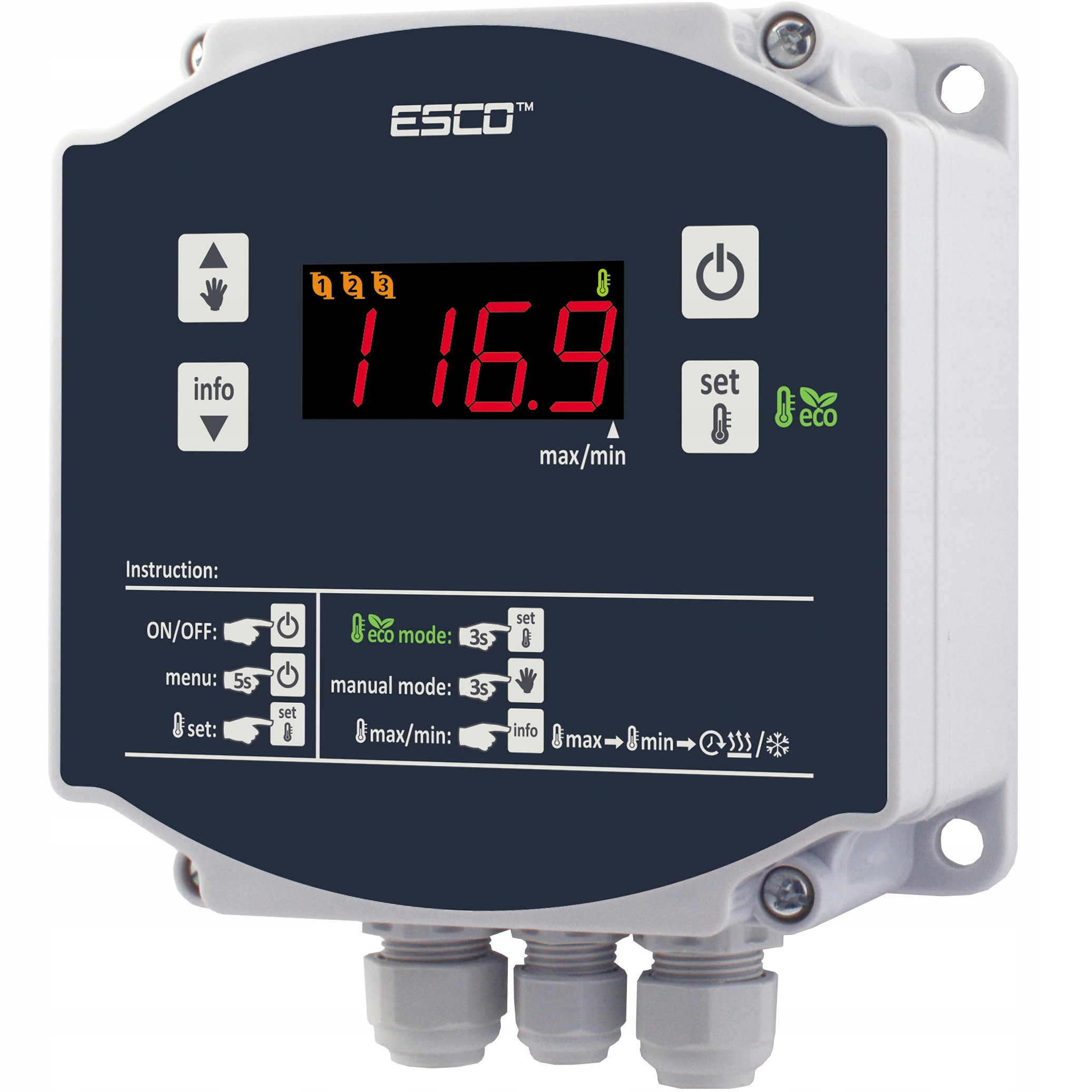 Счетчик выполнен в промышленном герметичном корпусе IP65 для работы в тяжелых условиях. Устойчив к загрязнениям, повышенной влажности и низким температурам. В комплект входят три датчика температуры из нержавеющей стали с кабелем длиной 2 м. Доступен в трех вариантах электропитания: стандартный - 230 В переменного тока, опции - 12 В переменного/постоянного тока и 24 В переменного/постоянного тока (доплата 12 В - 12,30 зл., 24 В - 36,90 зл.)