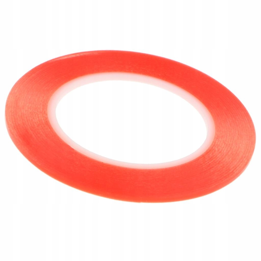 Двойная красная клейкая лента с прозрачной полиэфирной фольгой и сильным акриловым клеем, помещенная в красную вставку с высвобождением полипропилена.