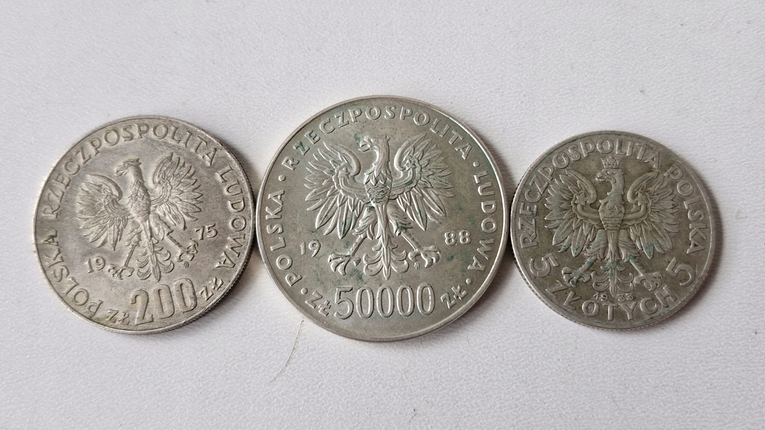 ПРОДАЮСЬ 3 МОНЕТЫ 200 злотых 1975 г. 50 000 злотых 1988 г. 5 злотых 1933 г. 70-ЛЕТИЕ ВОССТАНОВЛЕНИЯ НЕЗАВИСИМОСТИ ЖЕНСКАЯ ГОЛОВКА XXX ГОДОВЩИНА ПОБЕДЫ НАД ФАШИЗМНАХОДИТСЯ В СОСТОЯНИИ КАК ВИДНО НА ФОТО, ИМЕЕТ ПРИЗНАКИ ИСПОЛЬЗОВАНИЯ В ВИДЕ ЦАРАПИН, НЕКОТОРЫЕ МОНЕТЫ ИМЕЮТ ПОТЕНЕНИЕ, СОСТОЯНИЕ ПРЕКРАСНО ВИДНО НА ФОТО, ДОБАВЛЕННЫХ НА АУКЦИОН. ЦЕНА ЗА НАБОР ИЗ 3 МОНЕТ