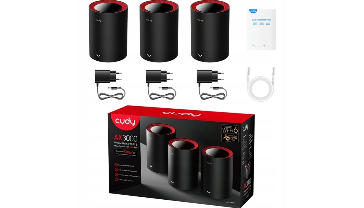 Cudy Router Mesh Ax3000 M3000 3-Pak -раскрыть мощность и скорость современной технологии Wi-Fi 6 с маршрутизатором M3000. Идеально подходит для домов и офисов, обеспечивая быстрое и стабильное соединение.