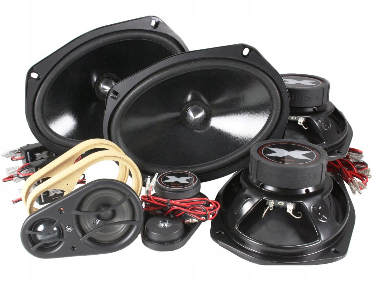 Высокоэффективная автомобильная акустическая система Excursion SX (Set eXcursion) с 4 низкочастотными динамиками размером 6x9 дюймов. В комплект входят 4 низкочастотных динамика, 4 кроссовера Plug&Play и комплект среднечастотных/твитеров SX-SAT (2 высокочастотных динамика + 2 среднечастотных динамика + рамки и монтажные панели). Кроссоверы оснащены высококачественными конденсаторами МКП и обеспечивают широкий выбор конфигураций подключения. Вуферы имеют алюминиевые фазокорректоры, задача которых — дополнительный отвод тепла из области катушки и улучшение звучания средних тонов в случае слишком большого угла прослушивания (например, при низком расположении дверных НЧ динамиков). Дополнительный символ «dB» (контрабас) в названии модели означает, что мы имеем дело с комплектом повышенной эффективности (+3дБ), оснащенным 4-мя НЧ-динамиками с результирующим сопротивлением 2 Ом при использовании 2-х НЧ-динамиков. подключены параллельно в 1 канал. Такая конфигурация обеспечивает незабываемые, мощные впечатления в виде хорошо контролируемой и очень динамично звучащей низкочастотной части акустического диапазона. Выражаясь отраслевым жаргоном, этот комплект просто обеспечивает невероятно мощный бас.