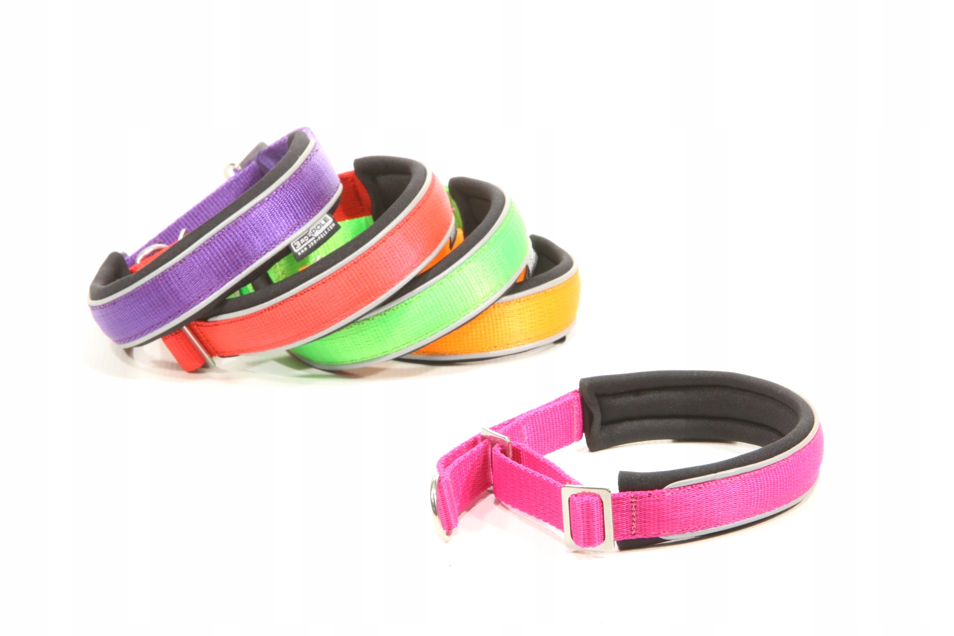 Ошейник S-NEO — очень прочный, но легкий ошейник. Изготовлен из трехсантиметровой ленты, на подкладке из мягкого неопрена и оснащен двумя линиями светоотражателей, значительно повышающими безопасность во время вечерних и ночных прогулок.