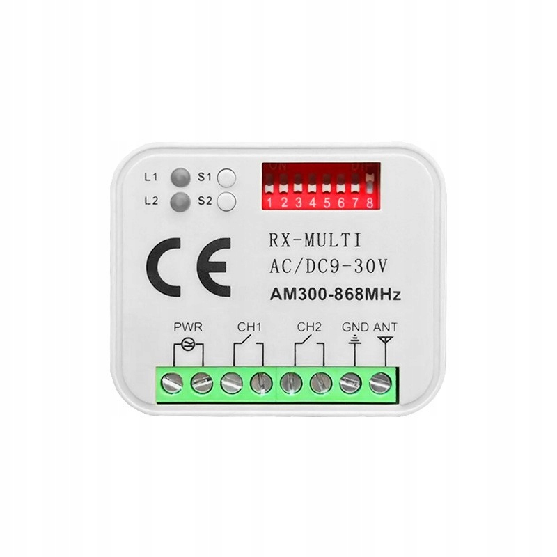 Приемник дистанционного управления для гаражных ворот, 300–868 МГц, RX MULTI AC/DC, 9–30 В, с пультом дистанционного управления. Технические данные: