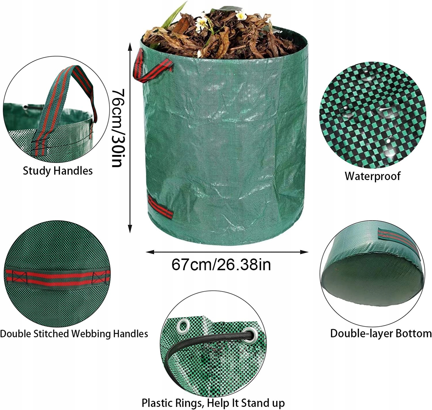 - ✮ Универсальное использование: лучше всего подходит для вторсырья, листьев, веток, травы и других садовых отходов. Садовые мешки облегчают избавление от листьев и помогают поддерживать порядок в саду. Эти многоразовые сумки предназначены не только для садоводства! Используйте их вместо громоздких коробок для хранения игрушек, одежды, вторсырья и всего остального, что вам может понадобиться.