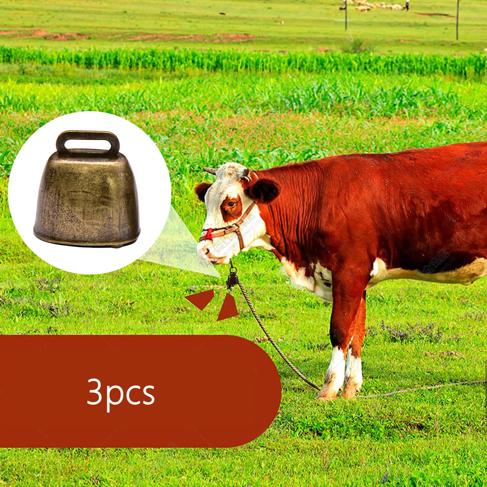 3 ретро-колокольчика для пастбища Маленький коровий колокольчик Громкие колокольчики для коровы, лошади, собаки, коричневые