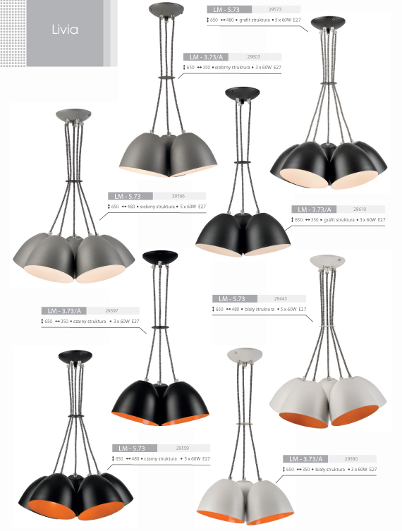 LIVIA – элегантный тройной подвесной светильник на веревках, изготовлен из металла, окрашенного покрытый порошком. Светильник крепится на металлическую планку прямо к потолку. Есть возможность регулировать и укорачивать длину кабелей.