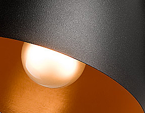 Снаружи металлические абажуры выполнены в структурном черном цвете (матовый жемчужный), а внутри - в приглушенном оранжевом (не ярком). , слегка блестящий.