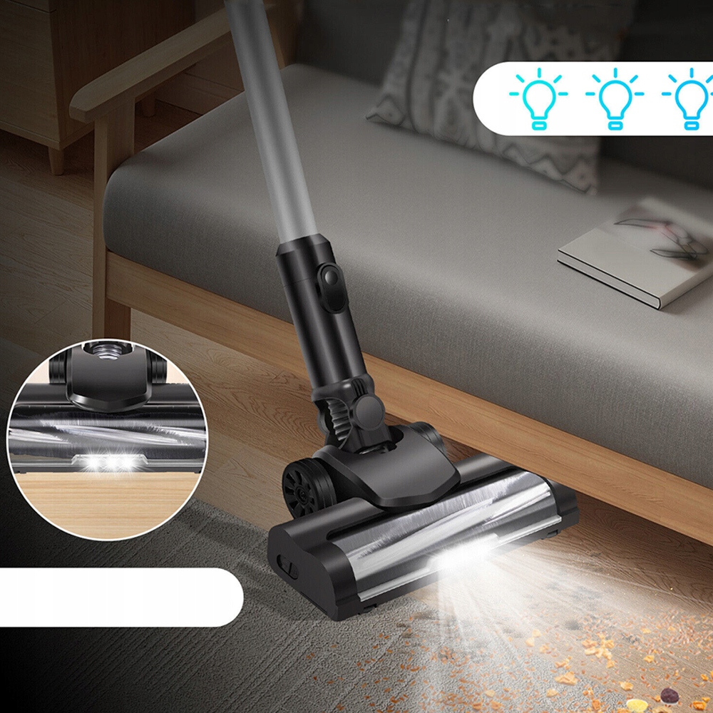 ⭐【3 СМЕННЫЕ ГОЛОВКИ】: универсальные аксессуары, адаптированные к различным потребностям! Маленькая щетка и тонкая всасывающая головка идеально подходят для работы в ограниченном пространстве. Щетка для пола со светодиодной подсветкой достигает каждого угла, даже труднодоступных мест, таких как диваны, кровати, столы и стулья (поворот на 180° по горизонтали и 100° по вертикали).
