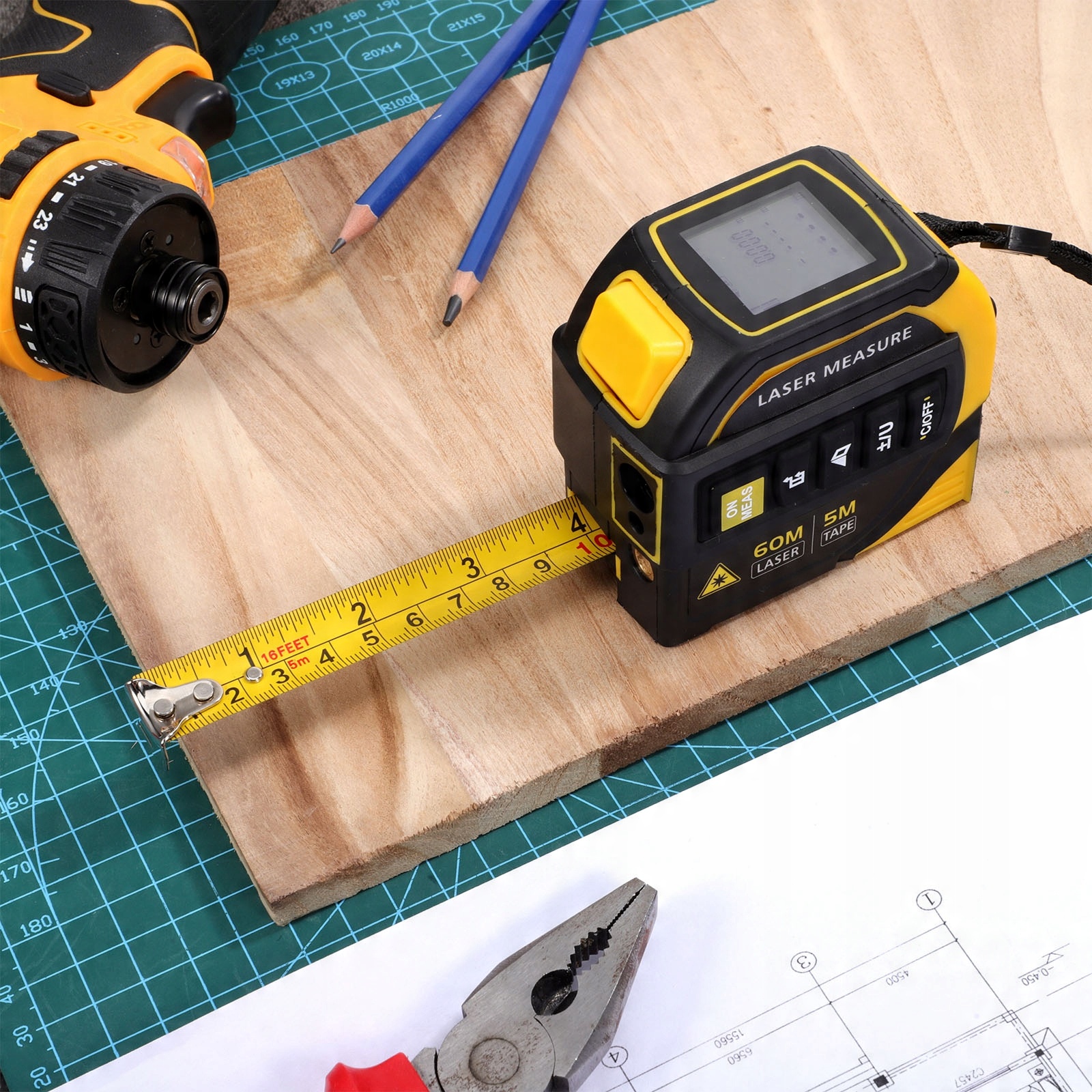 Благодаря диапазону 60 м и физической ленте 5 м этот инструмент обеспечивает сверхточные показания - идеально подходит для любых задач, от быстрой комнаты измерения до крупномасштабных строительных работ.