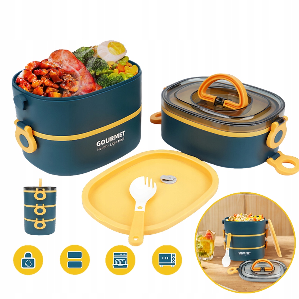 3-WARSTWOWE PUDEŁKO BENTO Z SZTUĆCÓW, PUDEŁKO NA LUNCH, DUŻA POJEMNOŚĆ