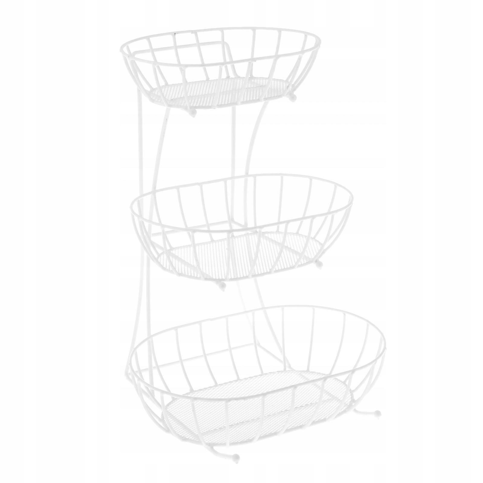 Трехъярусная корзина для фруктов большой вместимости. Подставка для фруктов из кованого железа. Космический белый