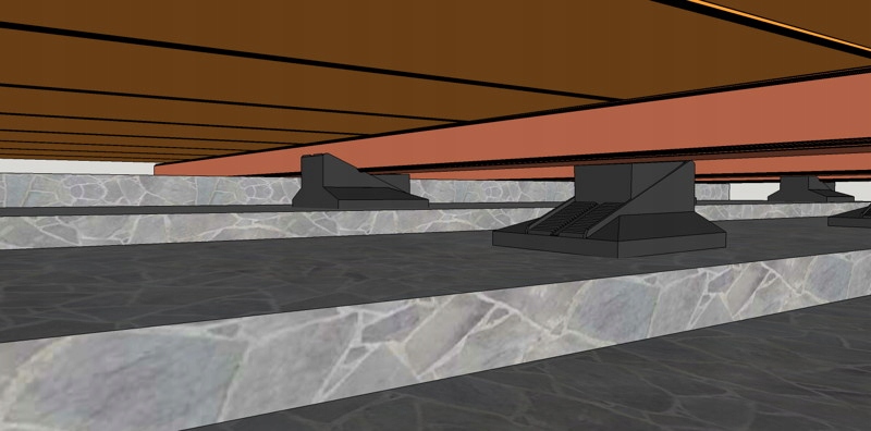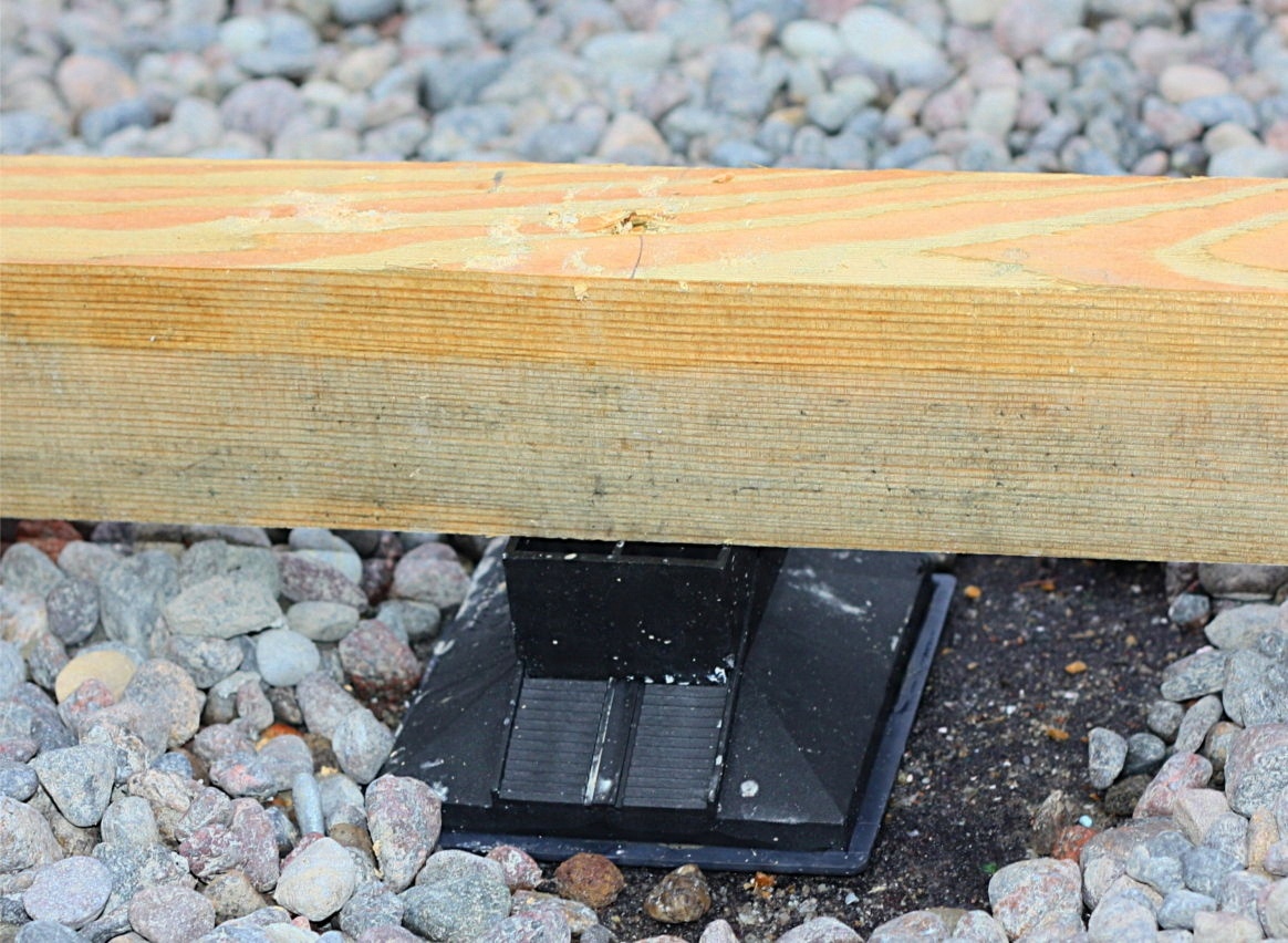 - способ монтажа - рекомендуем «плавающую» конструкцию без крепления к земле, крепление к балке с помощью шурупа длиной на 25 мм длиннее толщины балки, шуруп должен проникать в общую часть клина и подошвы ,