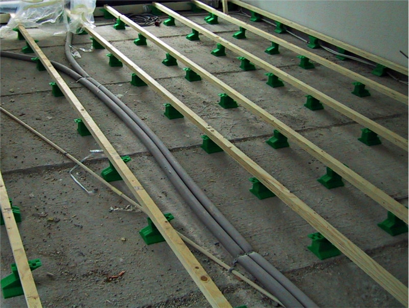 - Расстояние между лагами и землей позволяет расположить лаги, а следовательно, и доски, в любом направлении, без риска задержания воды,