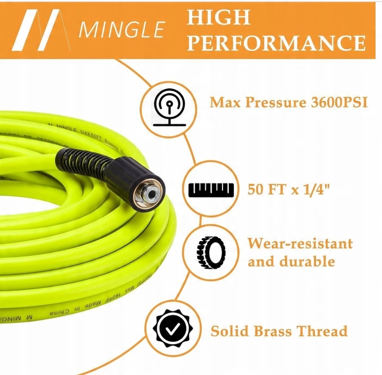 - Самая высокая производительность: максимальное рабочее давление составляет 3600 фунтов на квадратный дюйм. Максимальная температура составляет 60 ° С. Стиральная шланг с 50 -футовой давлением изготовлен из высококачественного материала, долговечного, устойчивого к погодным условиям и истиранию. Легко носить, перетаскивать и катиться. Это не оставляет следы и не сгибается легко