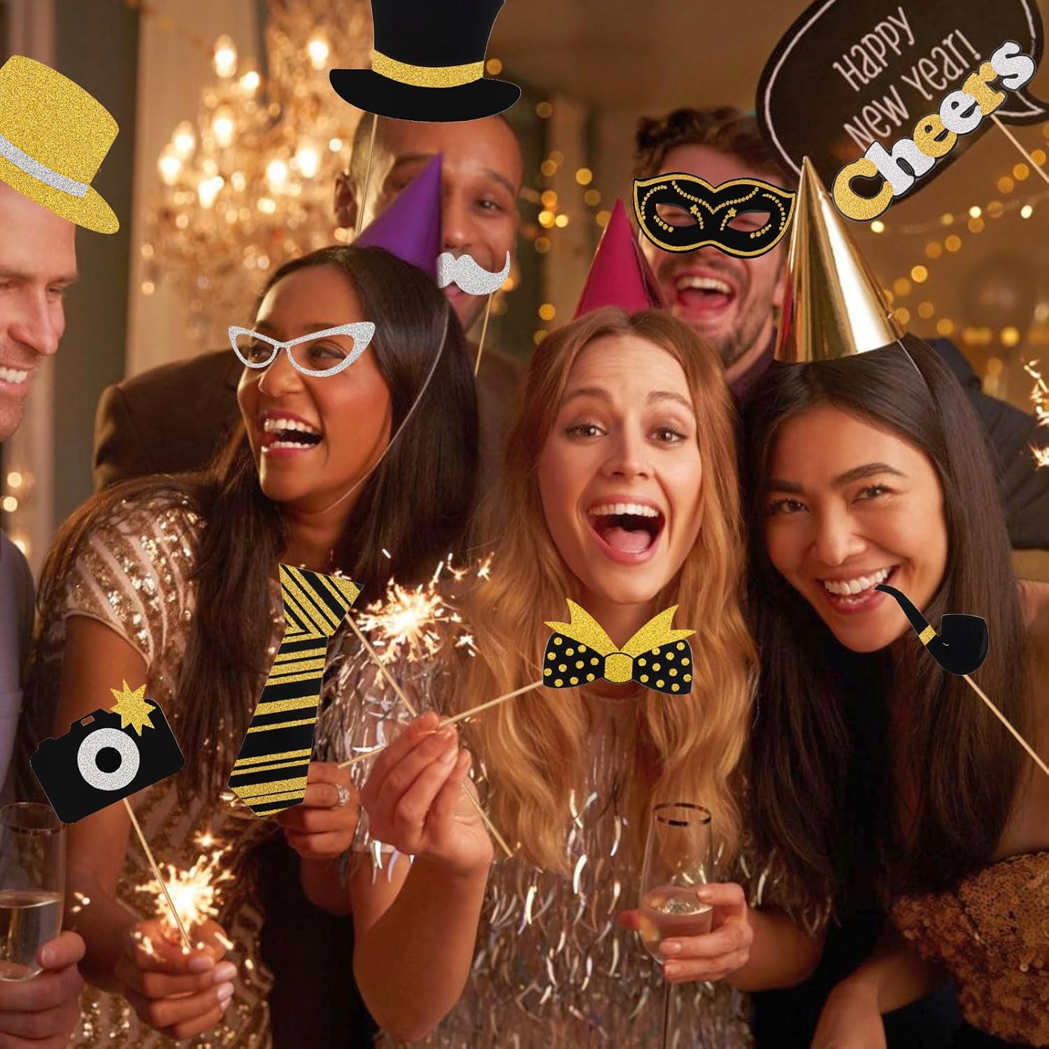 - Эти черные и золотые украшения оснащены бамбуковыми палочками и клейкими точками. благодаря этому простому и забавному реквизиту вы можете создать свой собственный стиль, используя простые и забавные реквизиты.