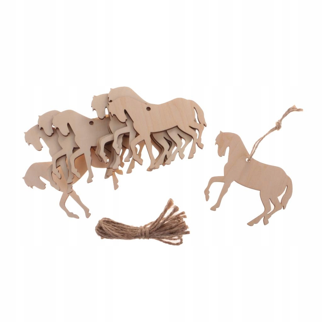 Деревянные формы лошадей с отверстием и веревкой, вырезанные из дерева.