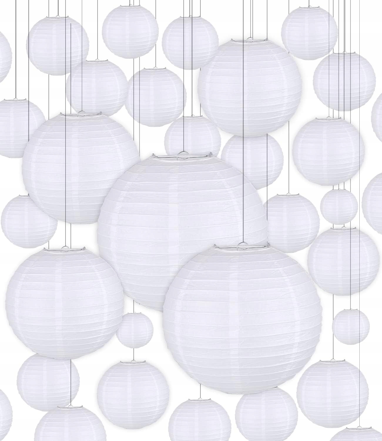 - Набор бумажных фонарей - каждая упаковка содержит 30 белых бумажных фонариков разных размеров, 6 штук по 15 см, 6 штук по 20 см. 9 фонариков по 25 см, 9 фонариков по 30 см. Комбинированный набор из нескольких предметов может удовлетворить ваши потребности.
