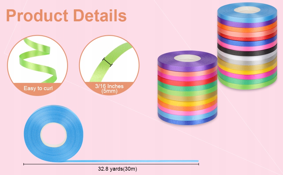 ✅ 100% Новое и высокое качество: Наша лента для кудри составляет 10 м на ролик и ширина 5 мм. Он очень маленький и идеально подходит для небольших художественных и ремесленных работ, упаковывать небольшие подарки, флористические статьи, струны воздушных шаров, вечеринки по случаю дня рождения, прозрачную упаковочную бумагу и многие другие применения