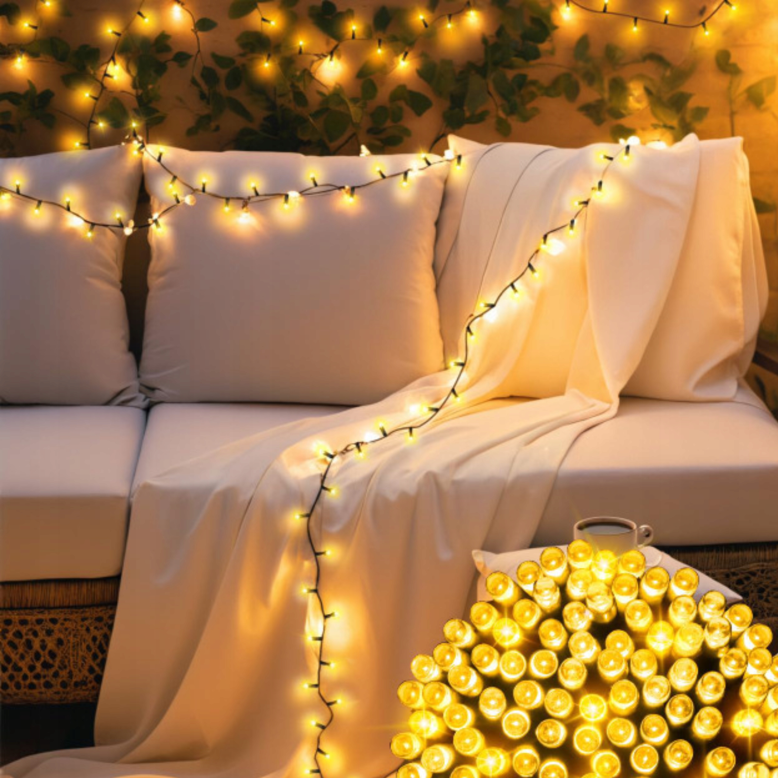 Елочные гирлянды привнесут в ваш интерьер неповторимую рождественскую атмосферу. Благодаря питанию от сети вам не придется беспокоиться о замене аккумулятора. Наши светильники идеально подходят для украшения рождественских елок, балюстрад, террас, садов или фасадов зданий. Устойчивость к погодным условиям делает украшение пригодным как для внутреннего, так и для наружного использования. Энергосберегающие светодиоды обеспечивают длительную работу, а 8-функциональный программатор позволяет настроить режим освещения под настроение. Теплый, белый цвет елочных гирлянд добавит уюта интерьеру и сделает каждый вечер более атмосферным. Свет мягко окутает ваши украшения, создавая спокойный и атмосферный эффект. Благодаря энергосберегающим диодам вы сможете долгое время наслаждаться красивым освещением.
