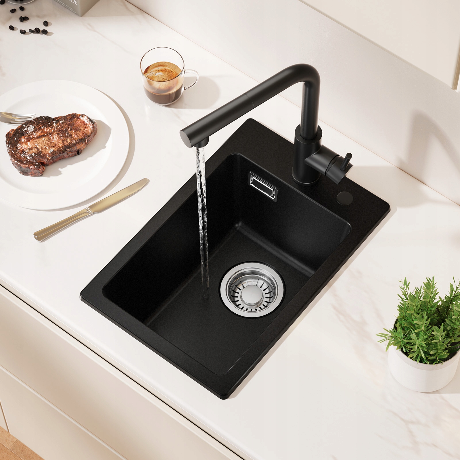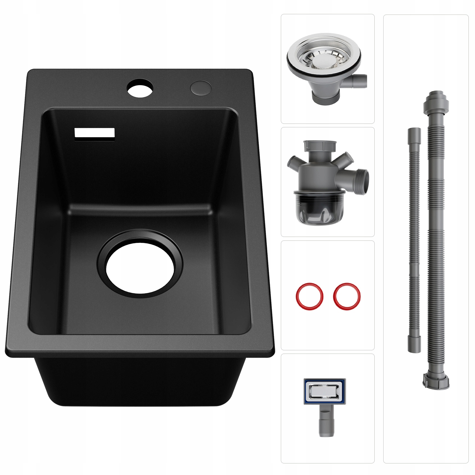 30*45 Столешница из кварцевого камня — стандартная одинарная раковина — черный