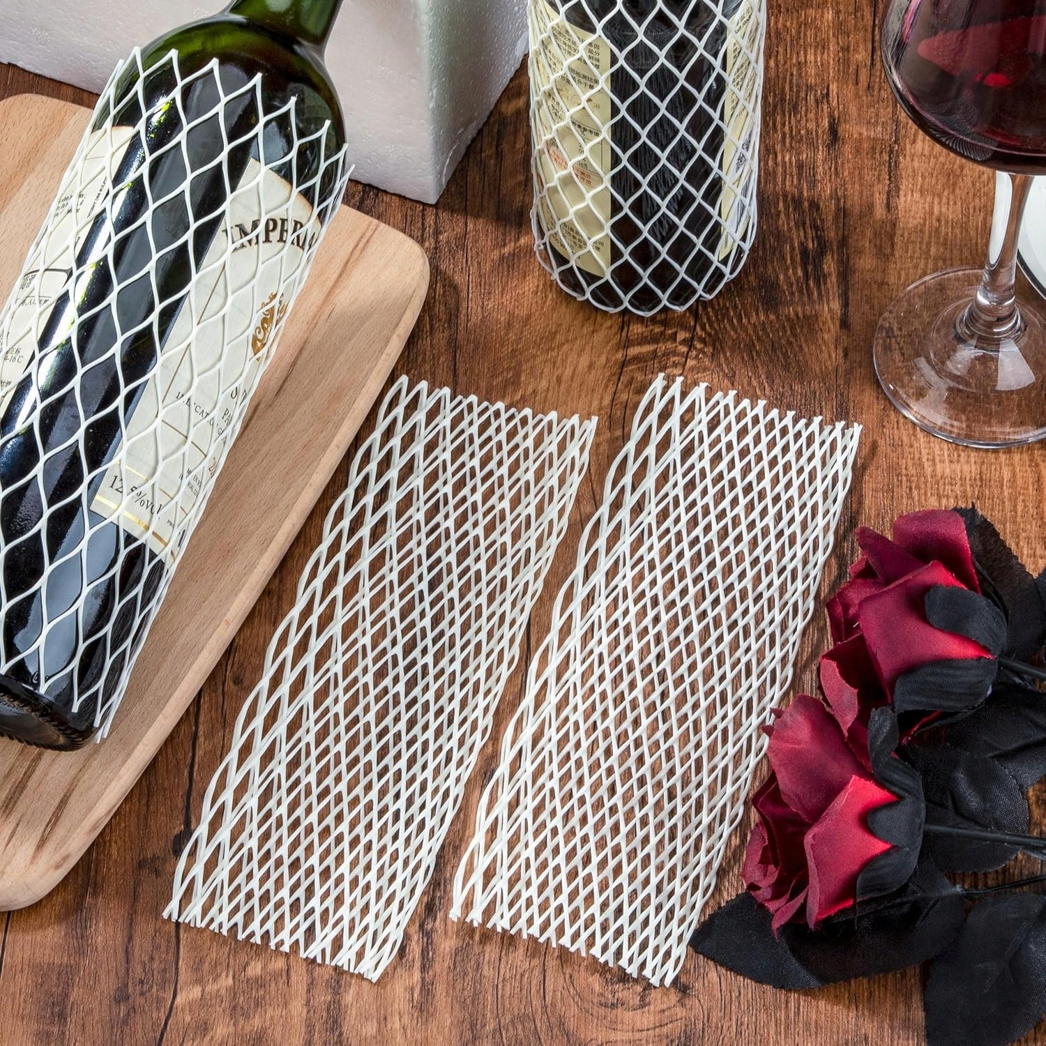 Набор из 30 гибких защитных сетчатых чехлов — идеальное решение для безопасного хранения и транспортировки винных бутылок. Защитная сетка не только защищает бутылки от механических повреждений, но и служит декоративным элементом, придавая бутылкам элегантный вид. Идеально подходит для домашнего использования, во время мероприятий, винных презентаций, а также в ресторанах или во время путешествий.