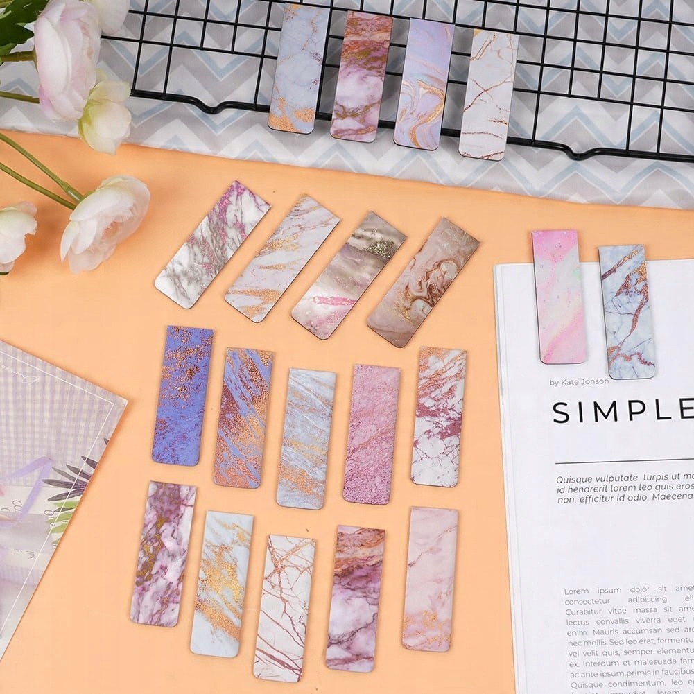 Набор из 30 изящных магнитов в виде закладок, выполненных в модном мраморном узоре. Идеально подходит в качестве функционального подарка учителям, ученикам или мамам, которые любят читать. Благодаря сильным магнитам закладки надежно удерживают страницы, не смещаясь, что позволяет удобно и стильно отмечать любимые части книг или заметок.