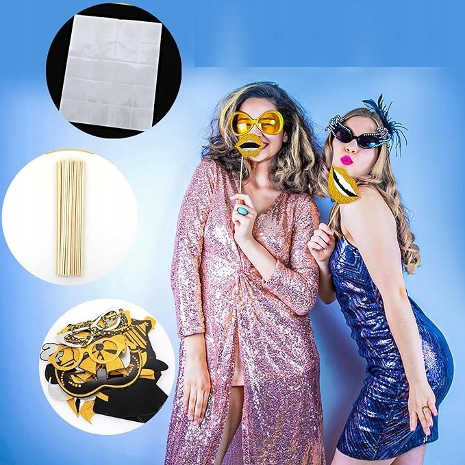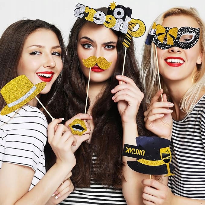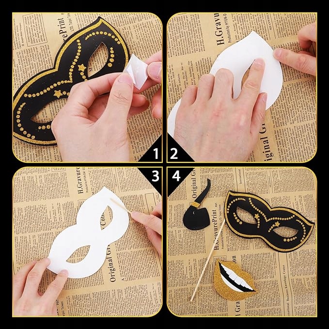 С этими золотыми и черными блестящими масками ваша вечеринка станет еще более особенной, а у ваших гостей будет возможность создать веселые воспоминания в фотокабине.