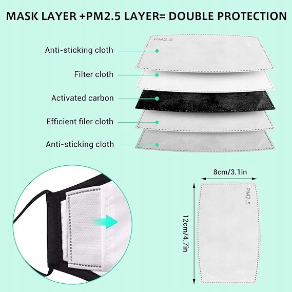 - С дополнительными фильтрами. 5-слойный фильтр состоит из 2 слоев нетканого материала из полипропилена, 2 слоев нетканого материала, полученного методом экструзии с раздувом из расплава, и 1 слоя активированного угля, который помогает предотвратить попадание пыли и других мелких частиц. блокируют переносимые по воздуху загрязняющие вещества, такие как пыльца, пыль, мелкие частицы, кулинарное масло, пассивное курение, неприятный газ и т. д.