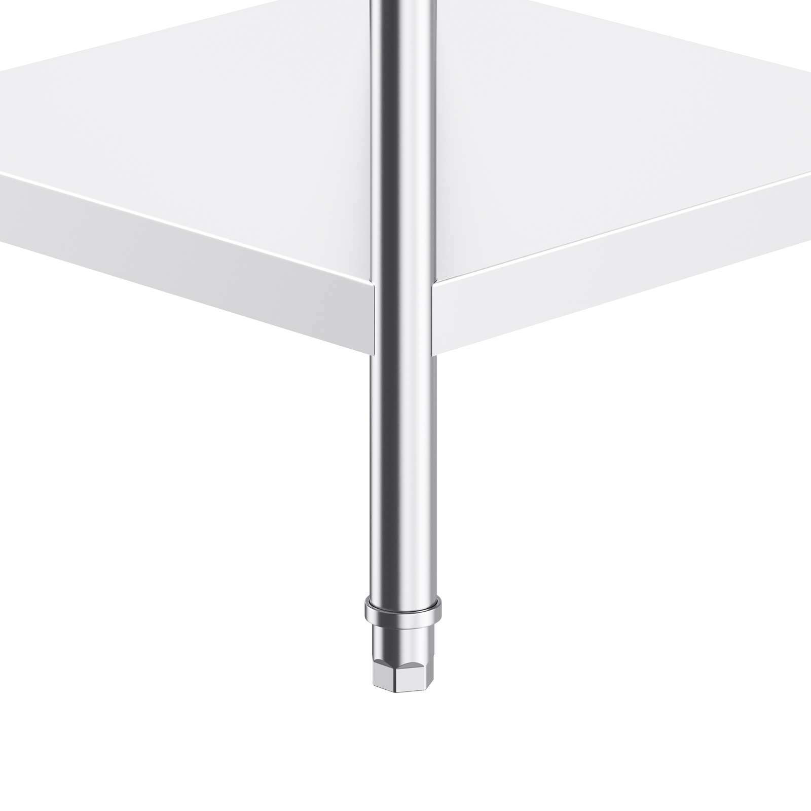 ПРИМЕЧАНИЕ. Для вашей безопасности во время сборки требуются перчатки. SUS201 из нержавеющей стали на столешницы, полки и ноги. Он обеспечивает превосходное сопротивление ржавчине, элегантному внешнему виду и гладкой поверхности, которую легко чистить с помощью простого вытирания. Сертификат NSF соответствует строгим нормам общественного здравоохранения, обеспечивая долгосрочную защиту вашего здоровья.