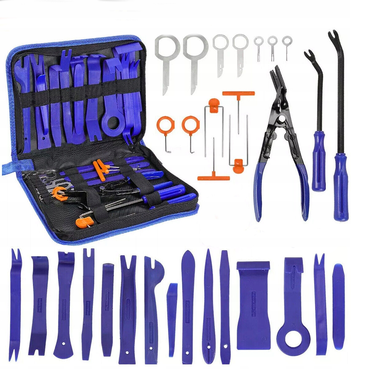 РАЗЛИЧНЫЕ ПРИМЕНЕНИЯ: В комплект входит 31 предмет различных типов инструментов для снятия дверных панелей, идеально подходящих для снятия и установки обивки автомобильной, морской, мебельной или авиационной техники, включая дверные панели, молдинги, оконные молдинги, зажимы, крепления, эмблемы, панели, радиоприемники и т. д.