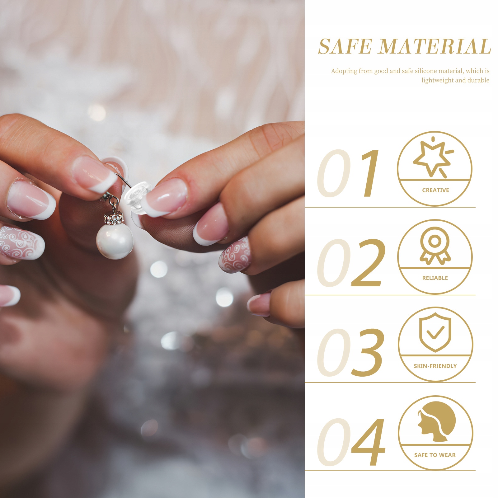 ✅ Это просто в строительстве и практическом использовании, обеспечивает приятный опыт при ношении. Изготовлен из силиконового материала высочайшего качества, безопасного и долговечного, дружелюбного кожи. Эти задние серьги могут быть использованы для большинства серьгов и серьгов. Достаточное количество для использования.