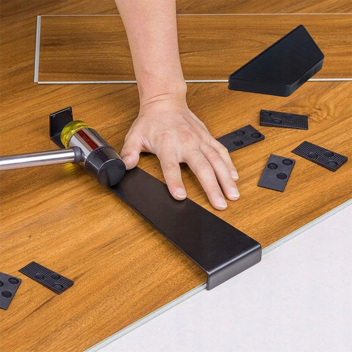 🔧Наш ударный блок для инструментов для укладки ламината изготовлен из толстого полипропилена, что предотвращает повреждение ламината и деревянных полов.