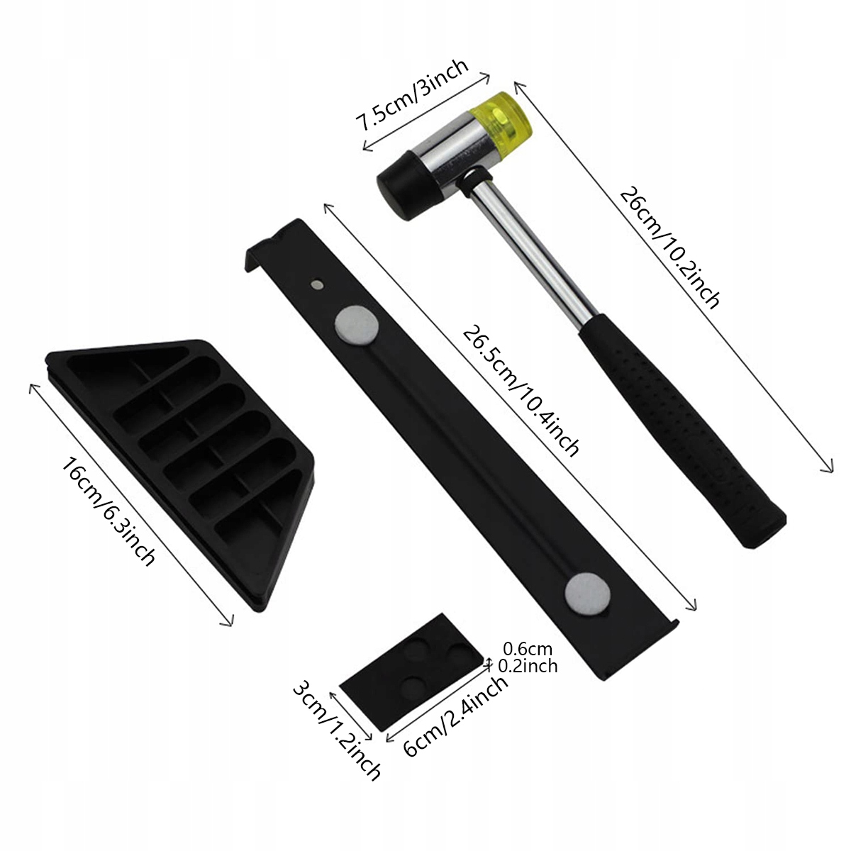 🔨 Безопасная и прочная конструкция инструмента - Молоток с резиновой ручкой имеет двустороннюю конструкцию, что позволяет аккуратно ударять по укладываемому напольному покрытию, обеспечивая безопасный монтаж, не повреждая поверхность. Головка молотка из ПВХ и конструкция из стальной трубки делают инструмент долговечным, простым в использовании и гарантируют надежную безопасность при длительном использовании.