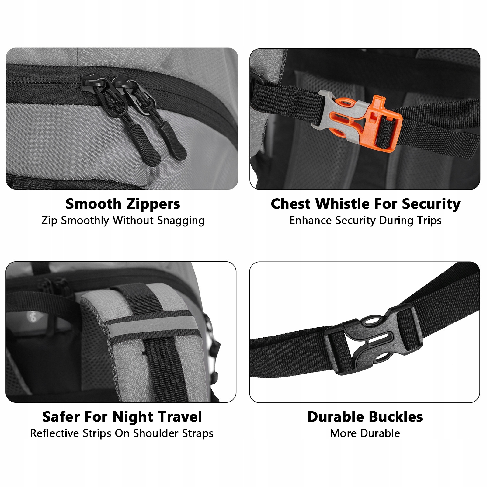 4. Удобная система рюкзака: он оснащен системой циркуляции воздуха с утолщенной дышащей сеткой на спине для уменьшения потоотделения и повышения комфорта. Светоотражающие лямки обеспечивают безопасное путешествие в ночное время.