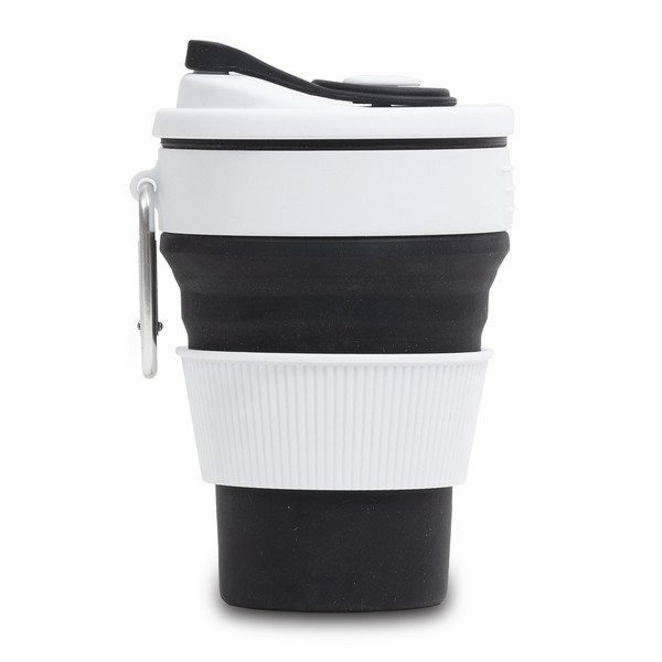 Складная силиконовая кружка 350 мл. После складывания он занимает очень мало места, вы можете положить его в карман куртки, положить его в сумку или булавку в рюкзак. Идеально идеально подходит при покупке кофе, а также для выхода на прогулку, его также можно использовать в качестве замораживающего контейнера.
