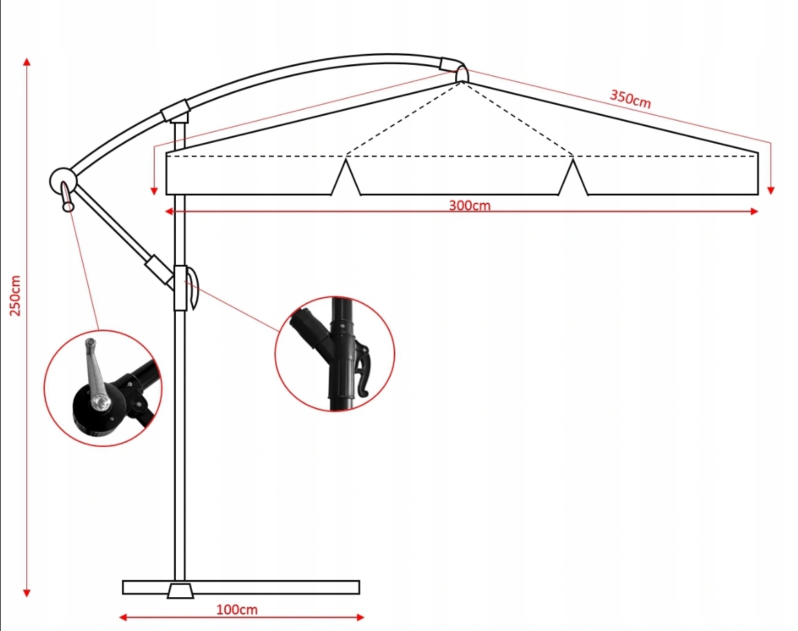 - стабильная - стальная рама. Основание 100x100 см. С одним расширенным руком , формированная форма, чтобы сохранить стабильность в всех условиях! 13 кг - давая стабильность даже у ветра