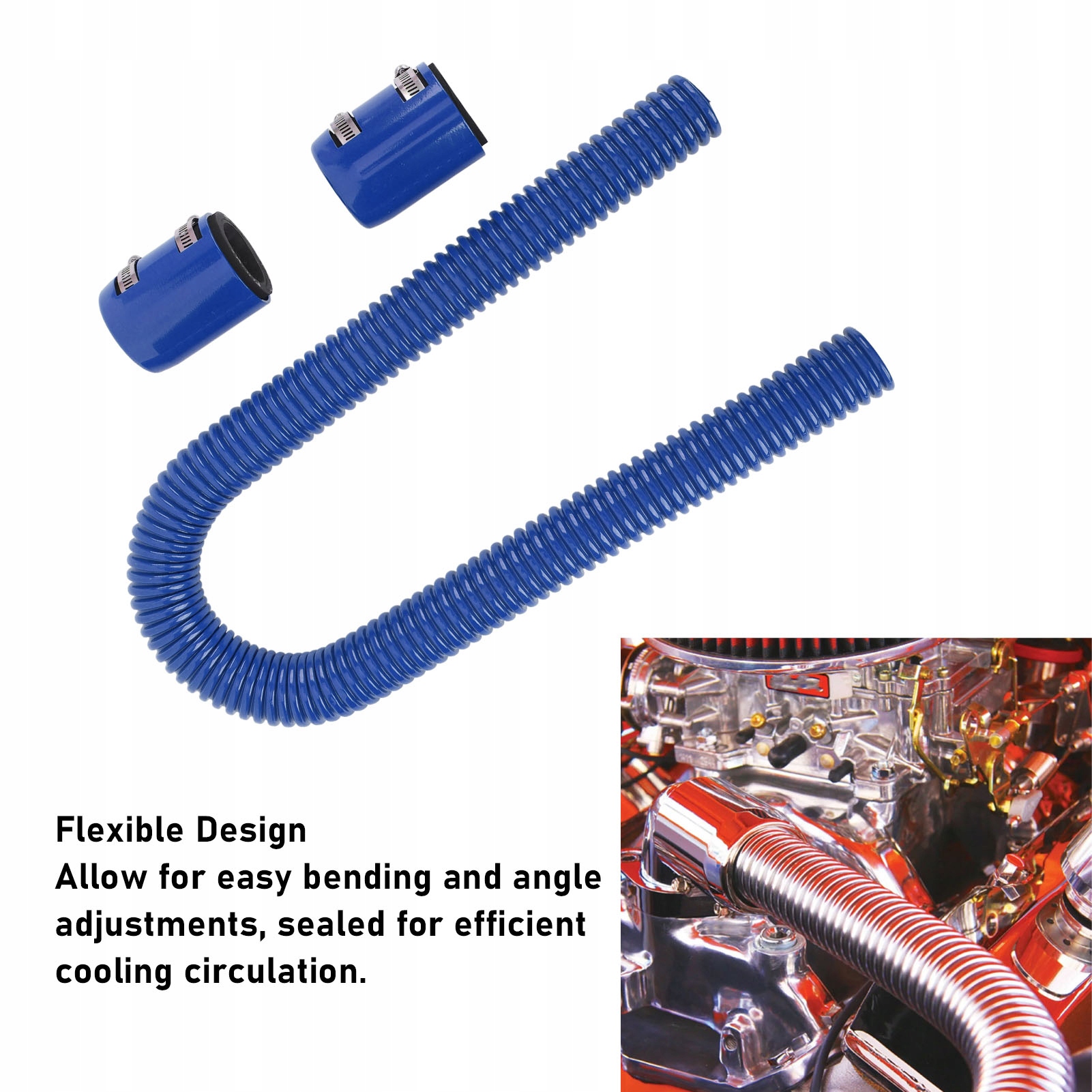 2. Гибкая конструкция: 36-дюймовый гибкий шланг радиатора можно свободно сгибать и поворачивать под углом для легкой установки и подключения, обеспечивая более гибкое решение для проводки, обеспечивая при этом герметичное уплотнение.
