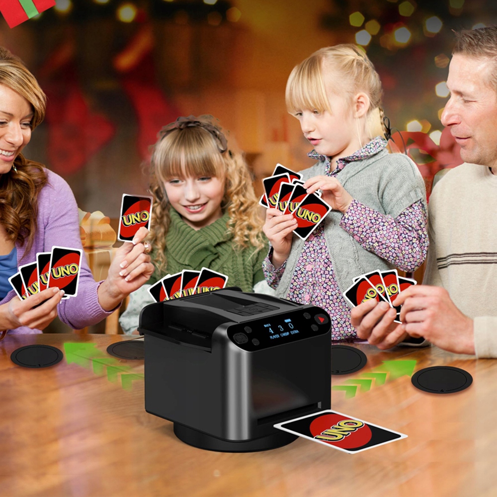 - Интеллектуальная перетасовка и раздача карт более справедливо и эффективно. и не -скользящая основа, которая позволяет вращать карты на 360 °, что увеличивает удобство использования.