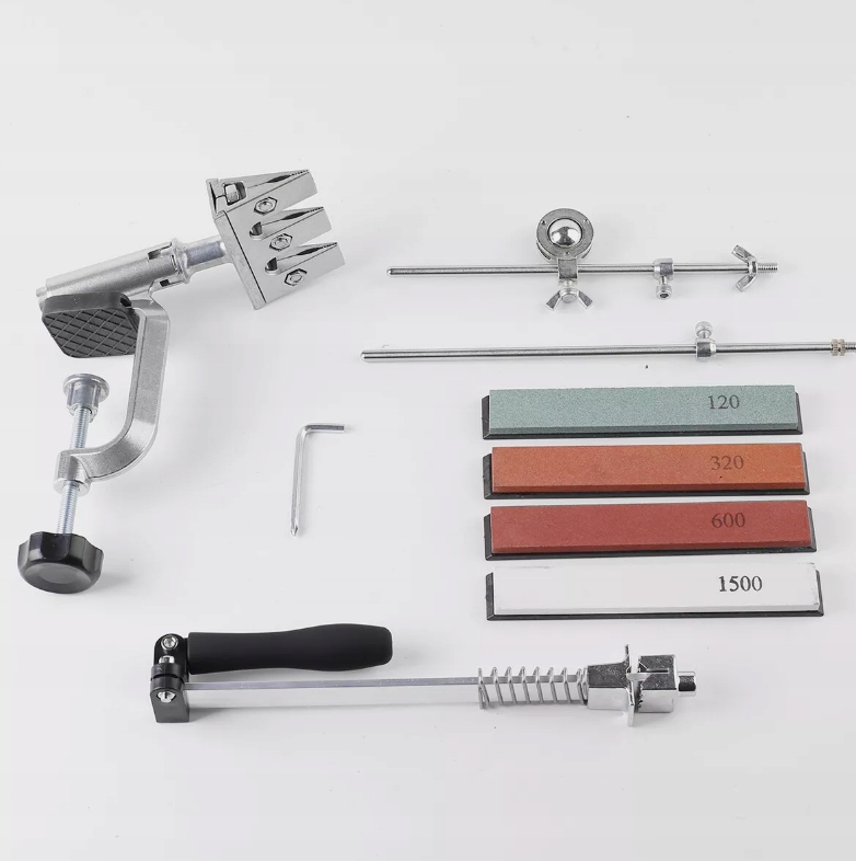 - ✔- оборудован 4 барами с базами, 120#, 320#, 600#, 1500#. Чем меньше зернистость, тем более грубая поверхность, подходящая для ремонта различных ножей и инструментов. Чем больше зернистость, тем более гладкой поверхности, которая может помочь в полировке и тщательно измельчить ножи.
