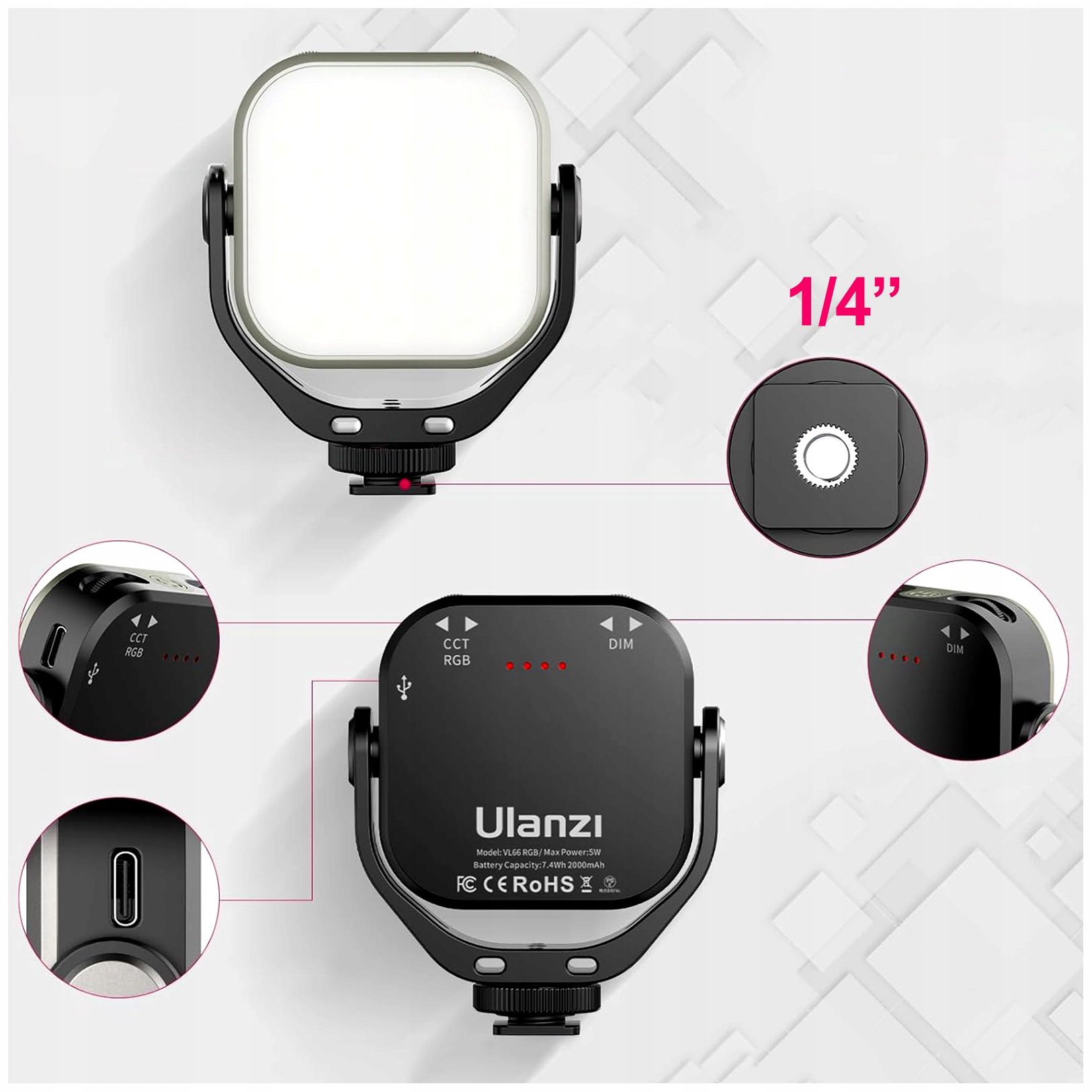 ulanzi vl66 rgb похож на универсальный перо в мире освещения. Благодаря креплению 1/4 дюйма и холодной ноге его можно легко установить на аппарате, штатива или другом фотографическом аксессуаре, что обеспечивает высокую универсальность в использовании.