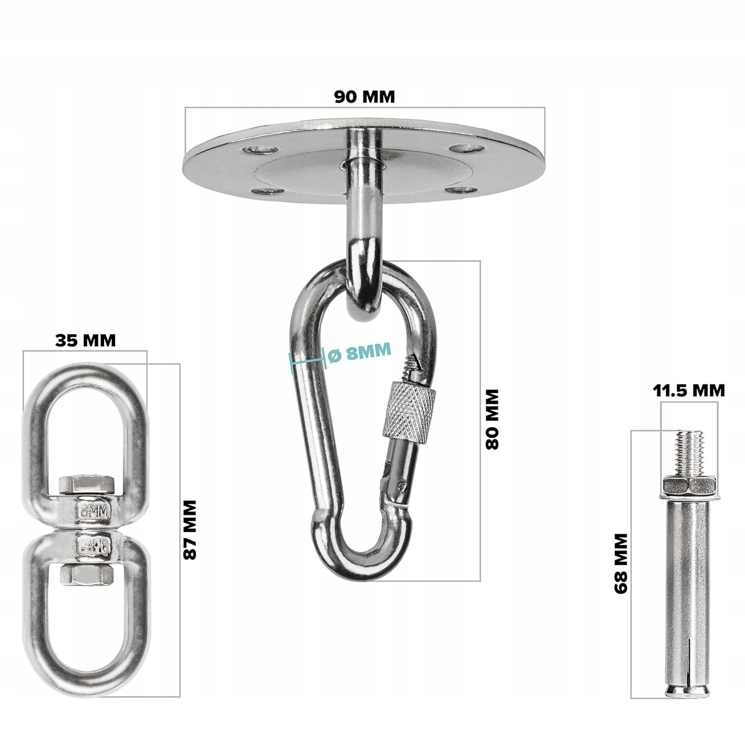 360° ТИШНІ СТЕЛЬНІ ГАЧКИ, ГОЙДАЛКА, НЕРЖАВІЮЧА СТАЛЬ SUS304, ДЛЯ ГАМАКІВ