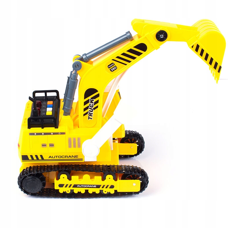 Игрушка состоит из большого экскаватора на резиновых гусеницах, тело которого можно повернуть на 360 '. Кроме того, ложка, расположенная спереди, подвигана. Мы можем управлять им через ручку, расположенную на стороне экскаватора.