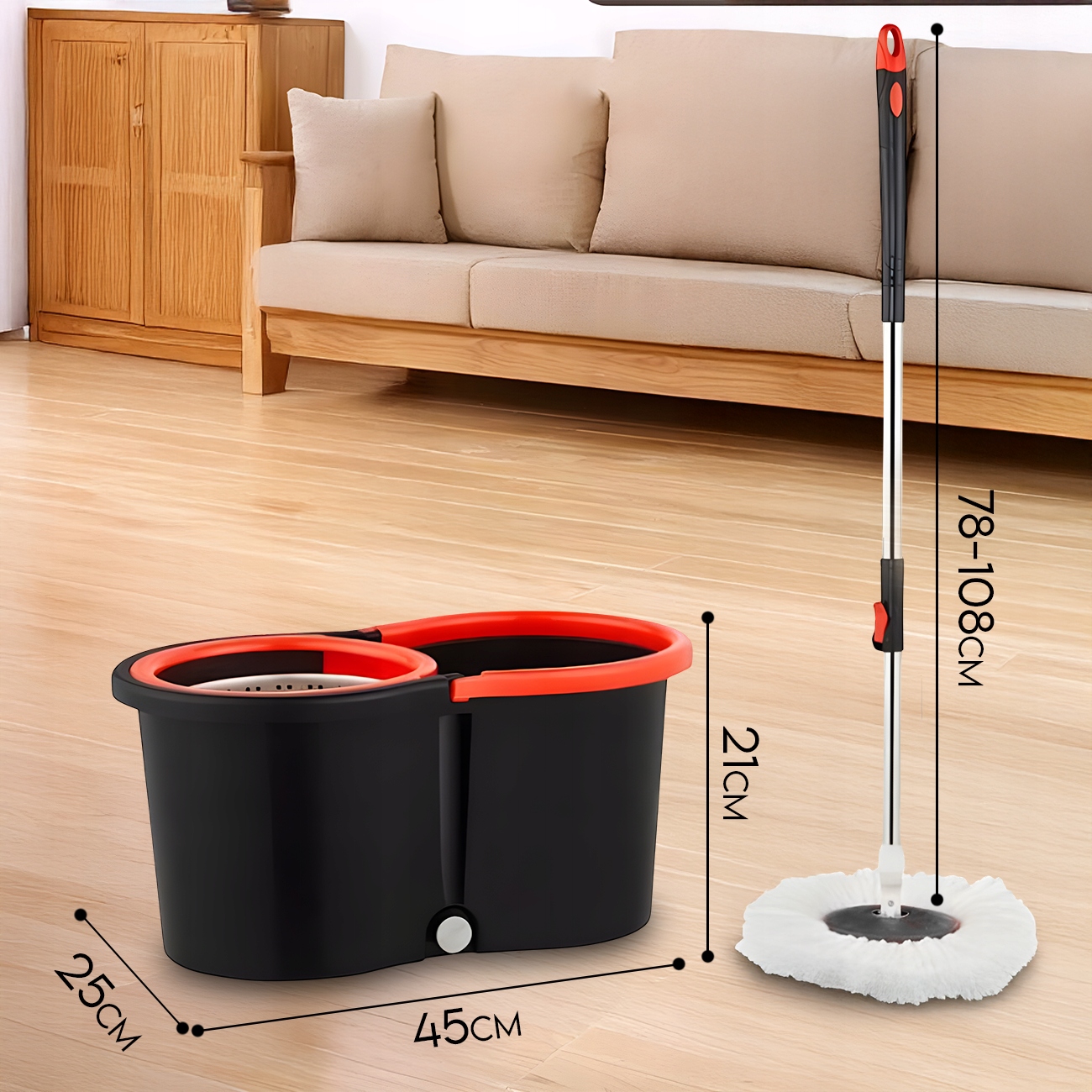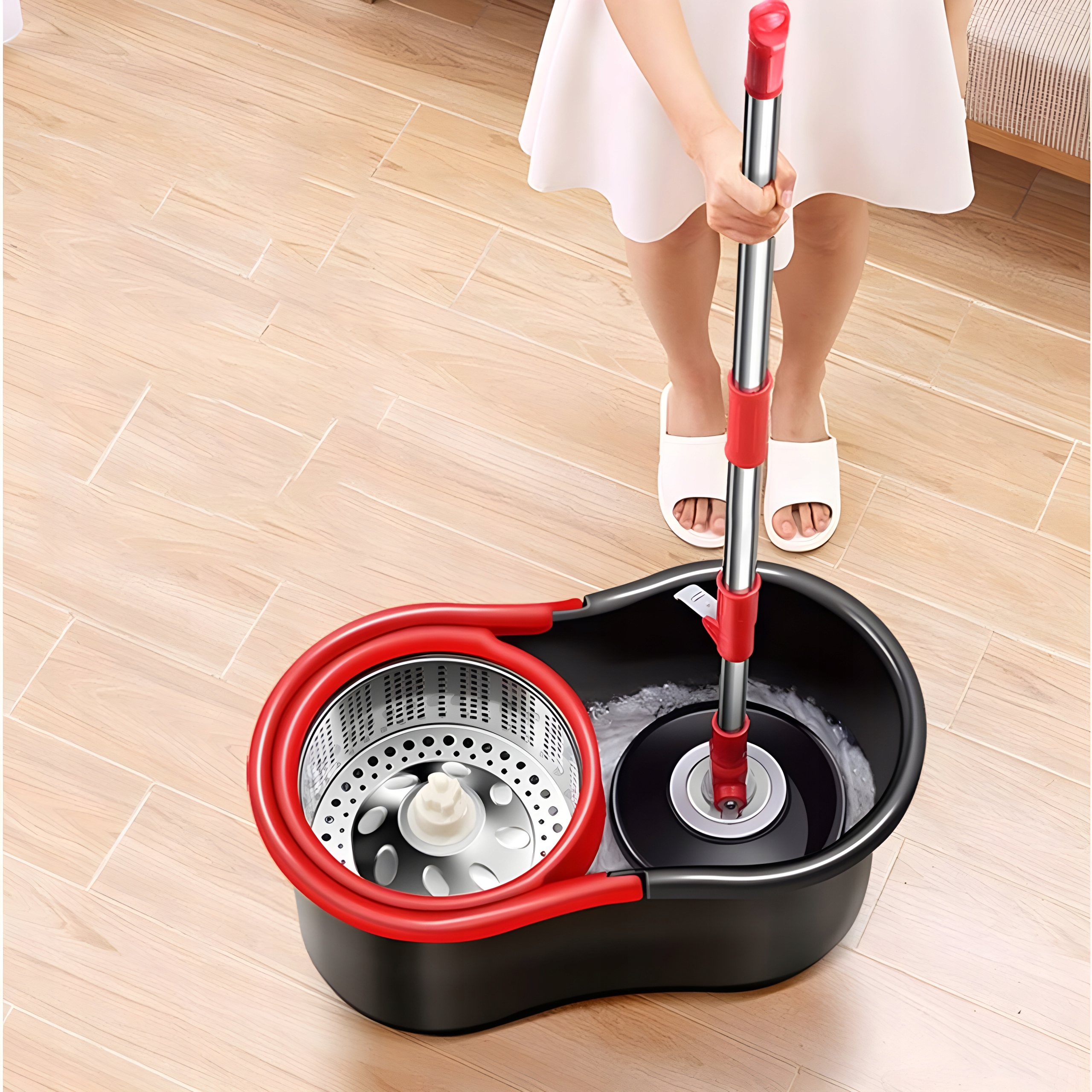 оснащен металлическим ротором, который обеспечивает эффективную и эффективную центрифугирование воды из швабры.