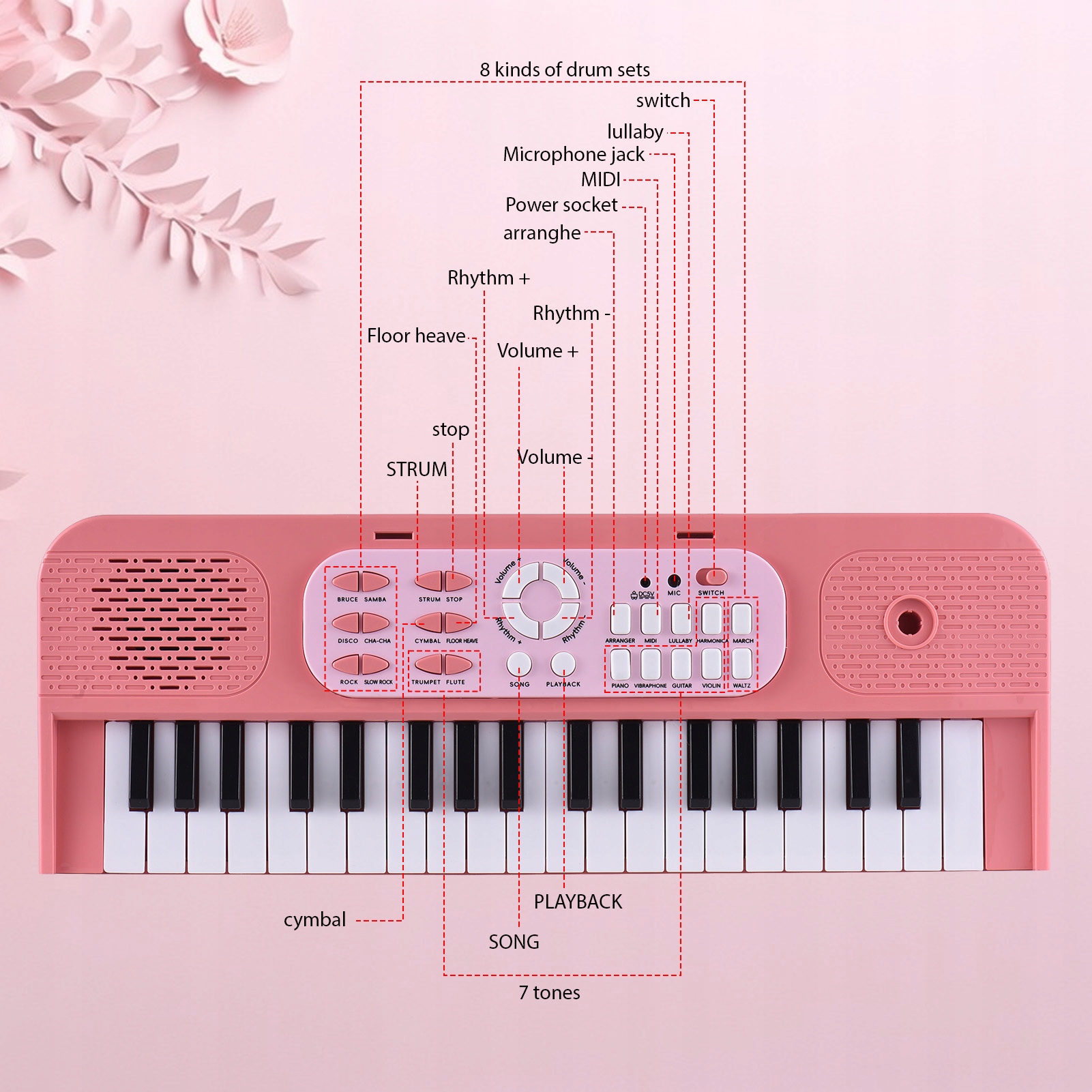 2. Расширенные варианты звука: с 7 различными тоннами и 8 типами барабанных групп, это электрическое фортепиано позволяет начинающим музыкантам экспериментировать с различными музыкальными стилями, поддерживать творчество и увеличивать свой опыт в науке.