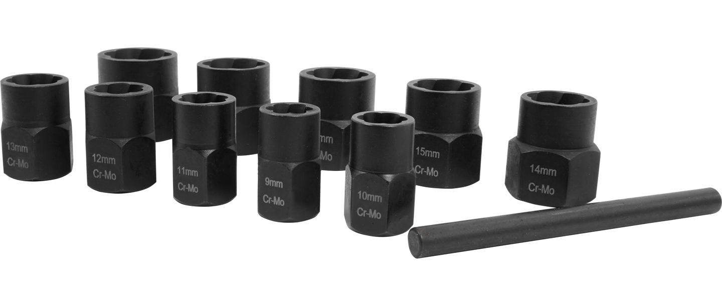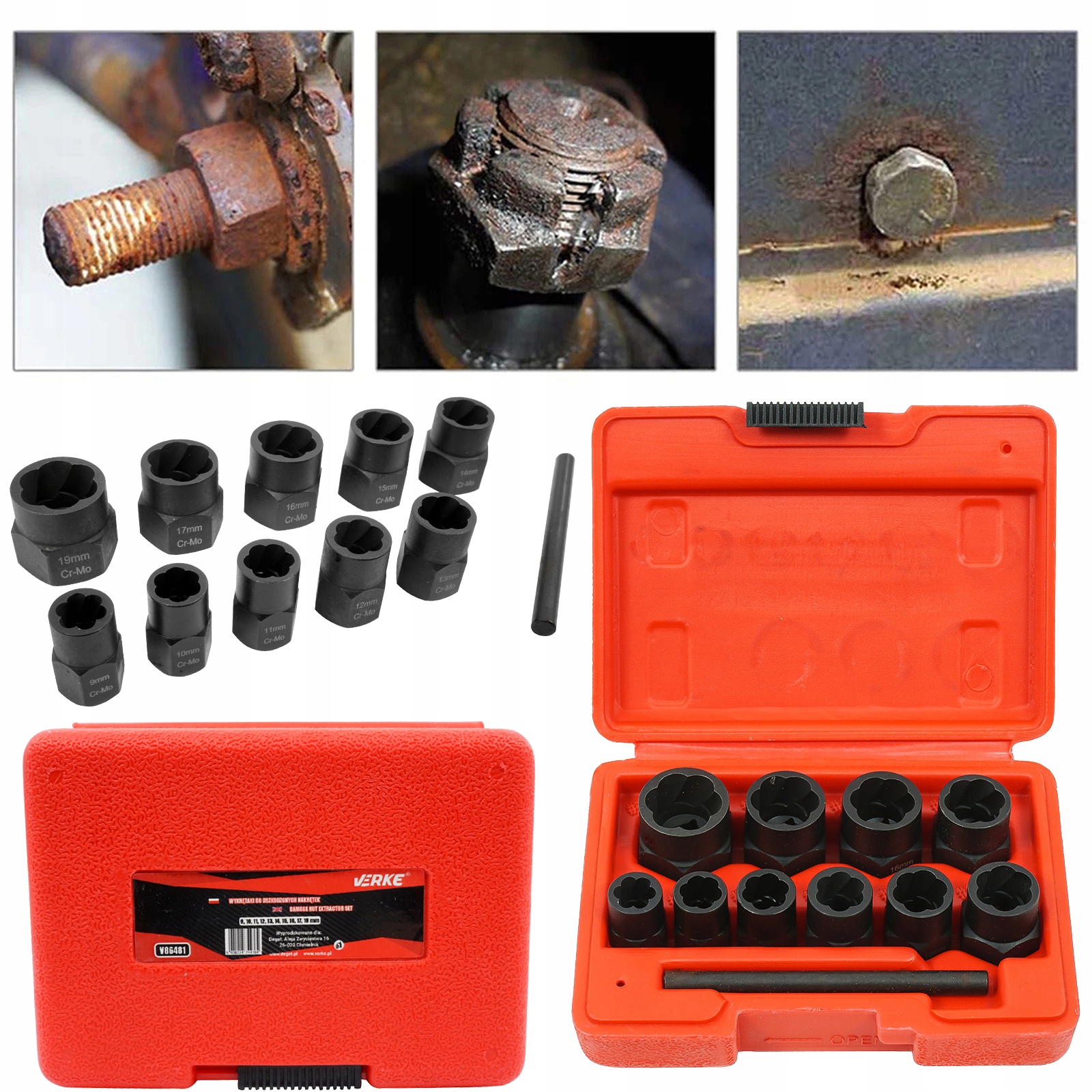 Набор головок используется для снятия сломанных, поврежденных и сточенных головок гаек, а также винты, незаменимы в авто-механических мастерских и ремонтных службах.