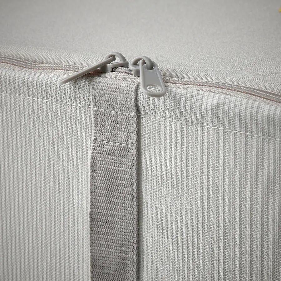 Откройте для себя идеальное решение для хранения с контейнером Hemmafixare для одежды и постельных принадлежностей. Этот элегантный полосатый контейнер, в белом и сером, является отличным способом организовать пространство в вашем гардеробе. Благодаря сплошной раме, спрятанной под мягкой тканью, контейнер сохраняет свою форму, даже когда укладывает несколько коробок друг на друга. Идеально подходит для системы шкафа Pax, но она также будет работать в других местах вашего дома.