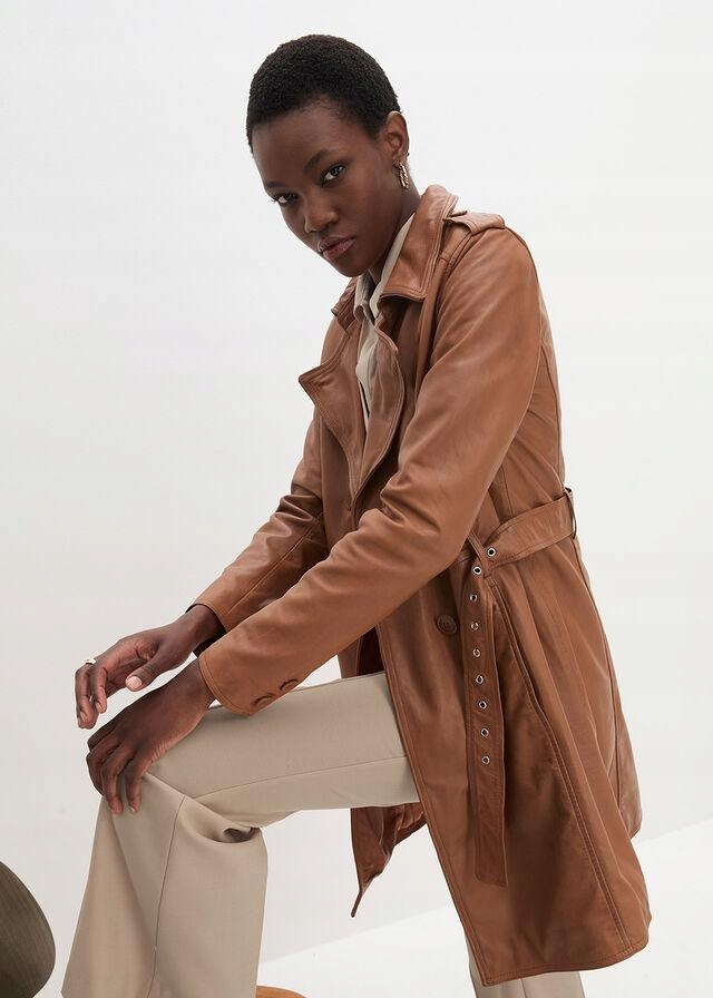 3A0E3 Bonprix Trench Coat из кожи Nappa с коричневым ремнем 48